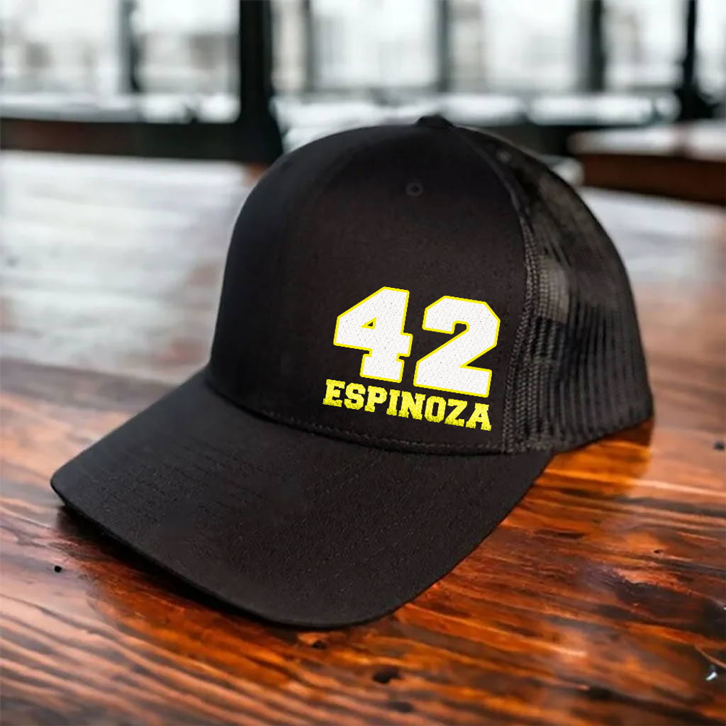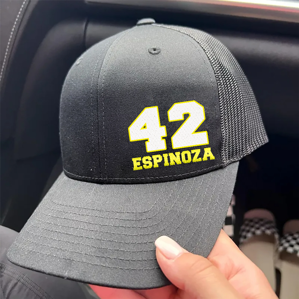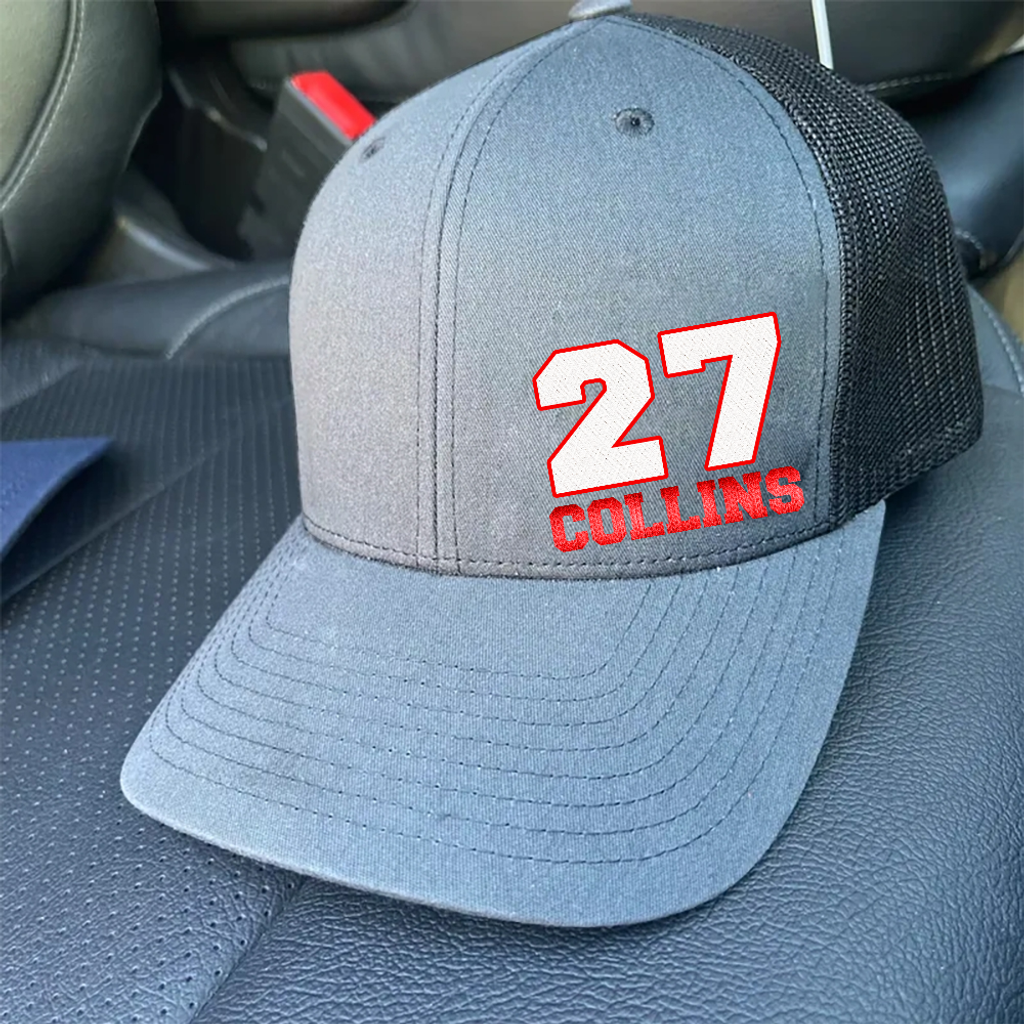 Our premium embroidery thread will leave you showing off your custom art for many years to come. Let us know what number, name, and colors you would like and we will get started on your custom hat!